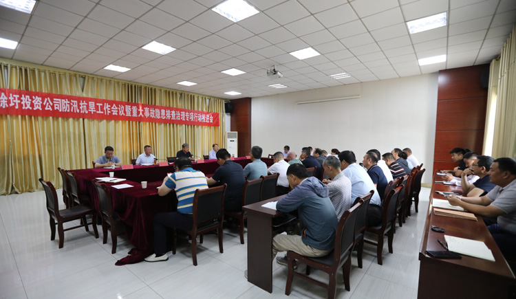 6月20日,投资公司在中型会议室召开防汛抗旱工作暨重大事故隐患排查整治专项行动推进会。投资公司领导班子,各单位党政及机关部室负责人,悦升公司分管安全领导及安全部门负责人等参加会议。公司党委副书记、工会主席刘刚主持推进会。
