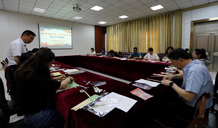 端午话安康,巧手制竹扇。走进机关中型会议室,工作人员向大家介绍了竹扇的编制方法。随后,大家挑选了自己喜欢的样式和颜色,按照制作要求“挑一压二、挑二压二”的方法将竹条编织固定,并融入了自己的想法和创意进行编织,经过一个多小时的努力,一根根竹条在大家的巧手下变成了一把把精致的扇子。