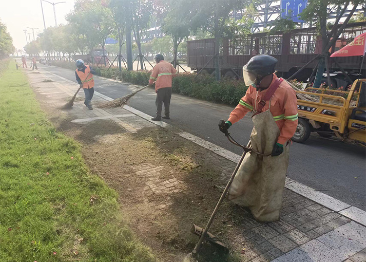 连日来,该分公司园区两个班组在班长带领下,近30余名突击队员,主动参与石化七道辅道杂草环境大清理战役中。工作现场,10余名党员先锋率先示范,脏活累活争先恐后。党员朱海勇、石锋等同志每天身背几十斤重的打草机,工作时长达5个多时,尽管尘土飞扬,仍然坚守道路岗位。辅道沿线,突击队员一字排开,舞动手中大扫把,快速清扫路面杂草泥土。经过两天努力奋战,人工清理辅道面包砖缝杂草,石子长达2000多米,捡拾各种隐藏垃圾300余包,转运各种垃圾40余车,有力保障马拉松沿线环境整洁达标。