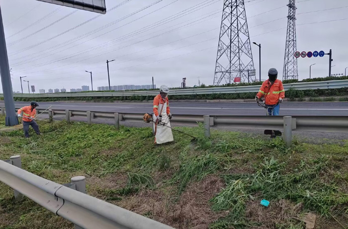 路边杂草“勤于收割”。面对高温少雨天气,道路一线辅道杂草生长迅猛。该分公司女子班、228等班组人员在班长带动下,每天身背几十斤重的打草机,重点强化清理徐圩核心区域云河南路,上海路、云六路、西安路等路段杂草。工作现场无惧强烈阳光曝晒,来回不停摆动机械,持续工作时长达5个多小时。女子班保洁员郁恩甲,不甘落后,工作中争先恐后,三天以来,共清理辅道杂草近3000多米长,有效控制了杂草生长,还原了路面整洁环境。