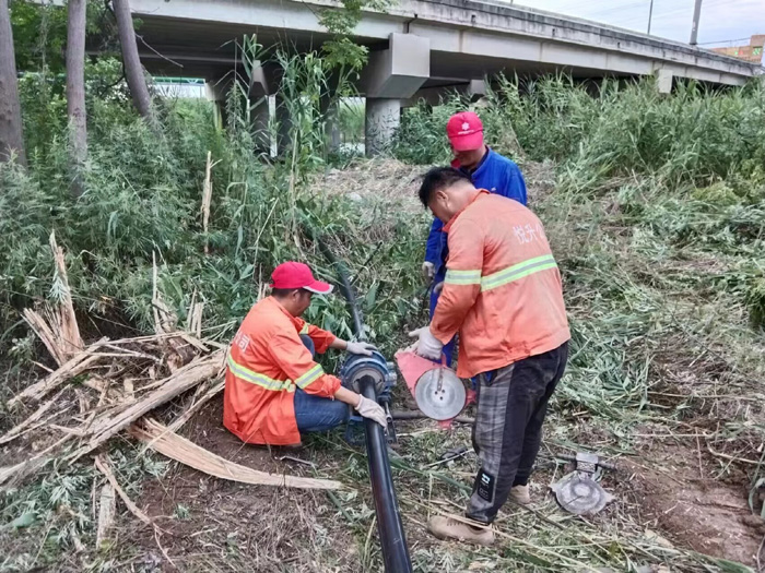 供水组接到任务后,积极采取措施,切实解决用水问题。考虑到原管网承压脆弱,为避免造成水资源的浪费,针对性对加水点上游老化管道进行更换改造。在施工过程中,由于安装管道在野外作业,施工环境较差,队员要在一人高芦柴地里来回穿梭,进行管道布设、管道熔接,加上室外温度达到35度以上,灼热感、蚊虫叮咬让队员们相当难受,队员季小东、刘佃宝脖子已经出现红肿,率先领到“红包”。供水班组全体人员埋头苦干,毫无怨言,克服天气及环境不利因素影响,抢时间、抓进度,经过3日全力奋战,顺利完成此次管道更新改造任务。此次安装作业,已对326米老旧管道进行了更换,加装直径100闸阀2个、直径100水表1只、100*65型地上式消火栓1个。(杨维军)